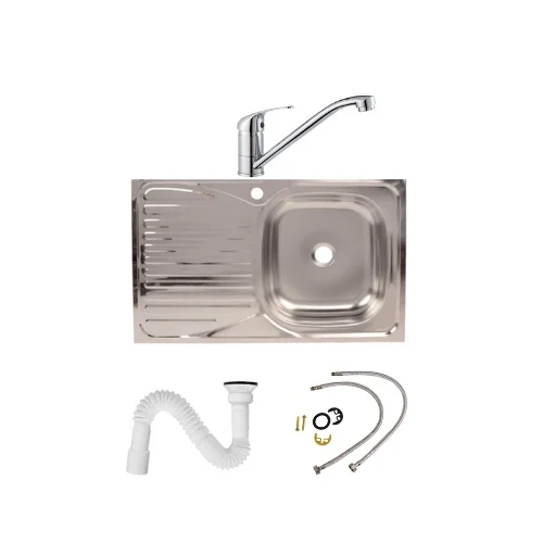 Set chiuveta bucatarie pentru masca cuva dreapta 80x50 cm baterie tija lunga si sifon de scurgere fara preaplin