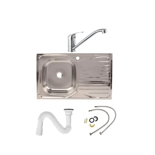 Set chiuveta bucatarie pentru masca cuva stanga 80x50 cm baterie tija lunga si sifon de scurgere fara preaplin